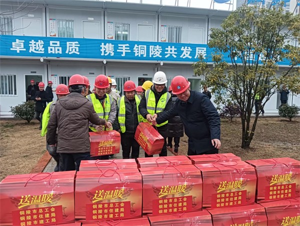 2024年2月1日上午,市住建局副局長(zhǎng)、工會(huì)主席楊平、市建工局局長(zhǎng)何俊林、副局長(zhǎng)湯春華代表市總工會(huì)、住建局和建工局到公司建筑工地慰問(wèn)節(jié)前堅(jiān)守崗位的施工人員,并向奮戰(zhàn)在工地一線的工人發(fā)放了慰問(wèn)品。公司董事長(zhǎng)牛和鋒、總工繆紅兵、副總李齊龍、工會(huì)主席許萍等參加慰問(wèn)活動(dòng)。